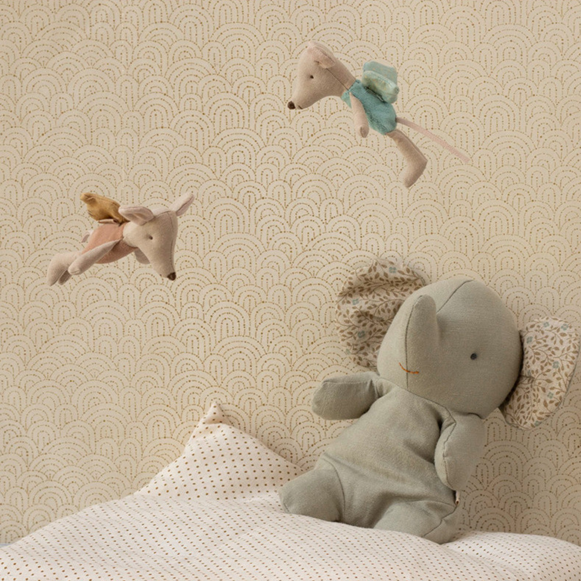 Découvrez cette charmante créature ailée signée Maileg, parfaite pour stimuler l'imagination des enfants. Avec ses ailes délicates et colorées, cette petite fée souris se suspend facilement grâce à la ficelle pratique fixée à son dos.