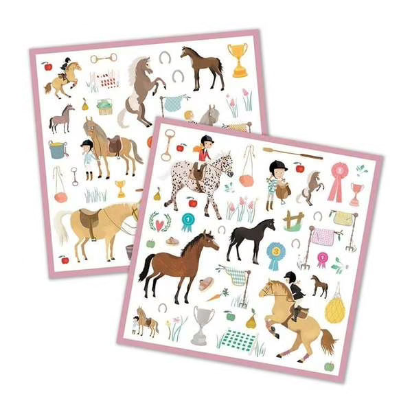 Djeco propose ses stickers « Les chevaux » dans une pochette contenant 4 planches totalisant 160 autocollants.