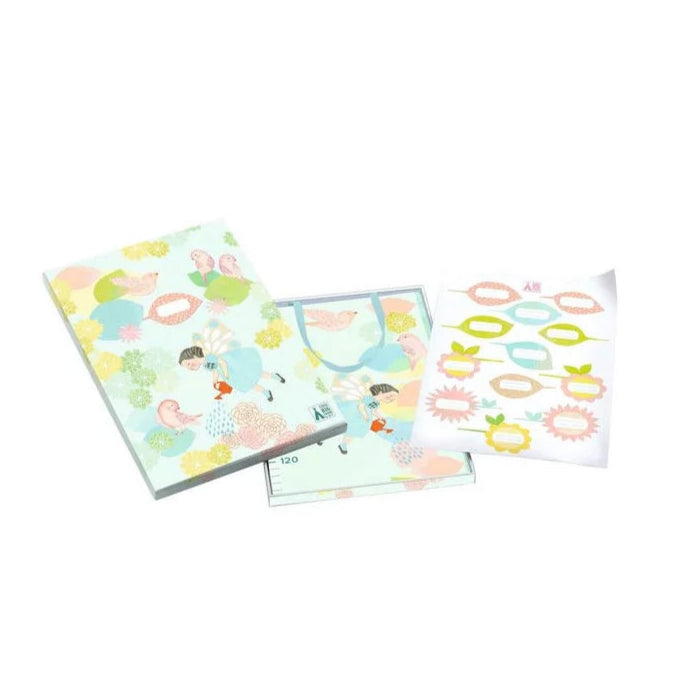 Cette belle boite personnalisable renferme une toise pliable possedant un ruban coloré pour l'accrocher et 12 stickers repositionnables.