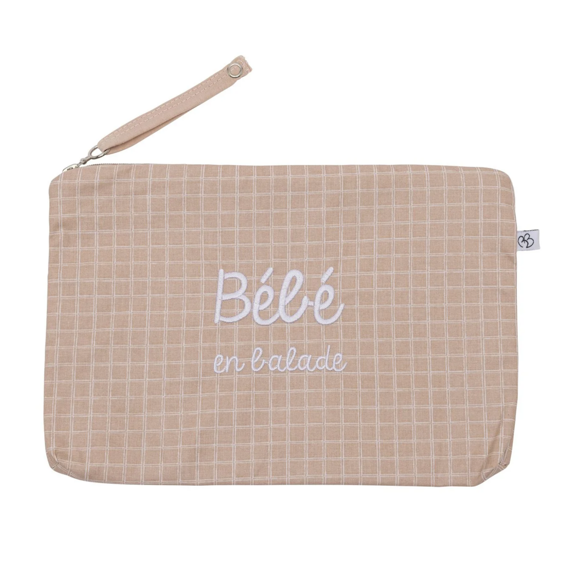 Trousse en coton enduit brodée “Bébé en balade” - Carreaux nude - BB&Co