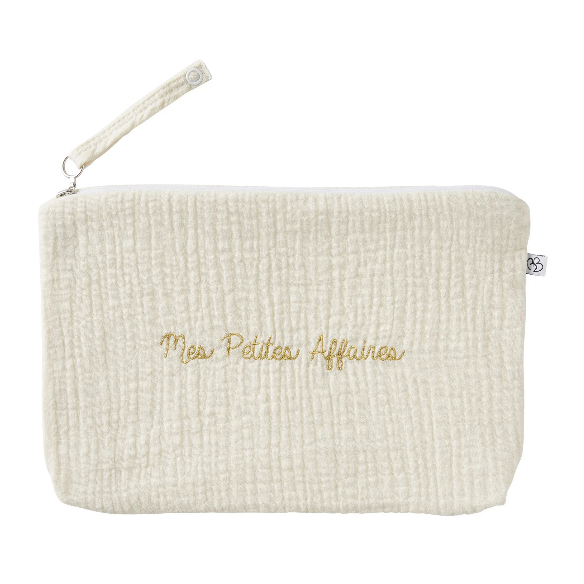 Trousse en gaze de coton brodée “Mes petites affaires” - Ivoire - BB&Co