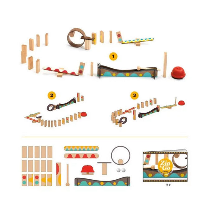 Plongez dans l'univers de Zig & Go 25 pièces de Djeco, un jeu de construction action-réaction conçu pour les enfants dès 7 ans.