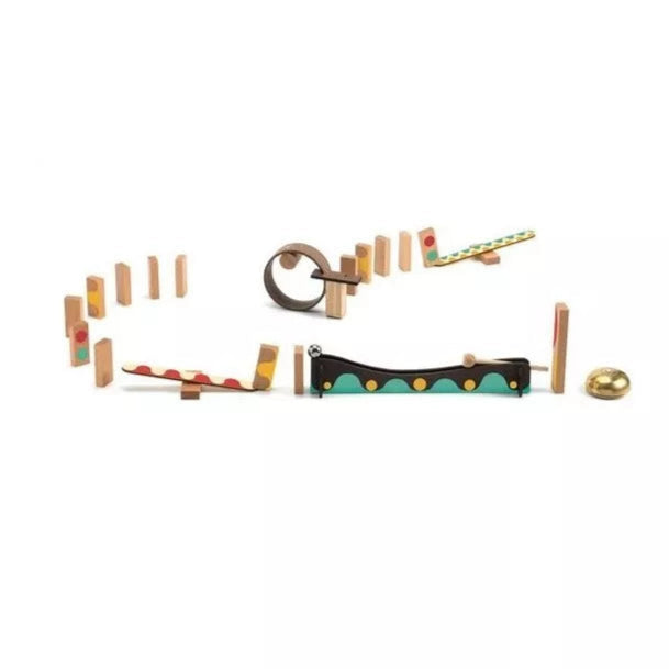 Créée par Jean-René Ménard, un inventeur farfelu, cette collection propose des enchaînements étonnants et pleins de surprises. Avec ses 25 éléments, votre enfant devra faire preuve de doigté pour assembler un parcours unique.